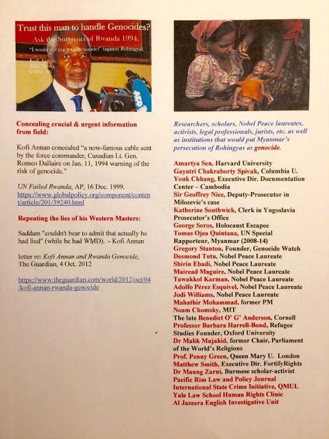 I condemn both Suu Kyi and Kofi Annan for their criminal irresponsibility in dismissing and downplaying the allegations of genocide.