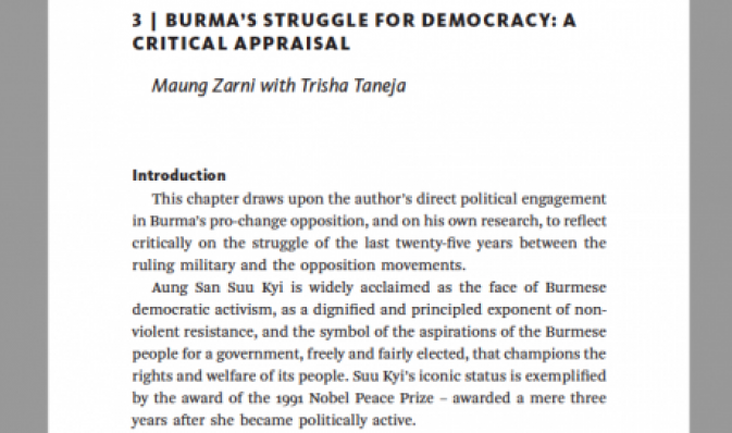 Burma's Struggle for Democracy: A Critical Appraisal Mar 7, 2020 Research https://www.maungzarni.net/sites/maungzarni.net/files/news-pdf/zarni_burma_struggle_for_democracy_in_activism_volume_by_alex_zed_books_may_2015.pdf